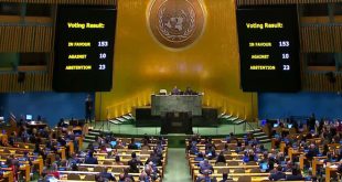 نيويورك-سانا اعتمدت الجمعية العامة للأمم المتحدة اليوم بأغلبية ساحقة قراراً يطالب بوقف فوري لإطلاق النار في قطاع غزة
