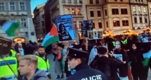 براغ-سانا شهدت العاصمة التشيكية براغ مساء اليوم مظاهرة حاشدة دعماً للشعب الفلسطيني وتنديداً بالعدوان الإسرائيلي