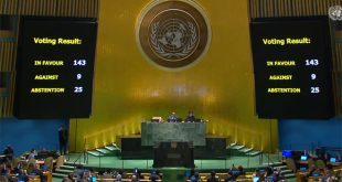 نيويورك-سانا اعتمدت الجمعية العامة للأمم المتحدة اليوم بالأغلبية قراراً يؤكد حق دولة فلسطين بالحصول على العضوية الكاملة في الأمم المتحدة