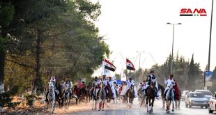 دمشق-سانا على هامش معرض دمشق الدولي وفي تقليد سنوي يبرز الأصالة ومكانة الفروسية الكبيرة في نفوس السوريين أقيم اليوم مسير للخيول العربية الأصيلة على طريق المطار بمشاركة واسعة لمربي الخيول العربية الاصيلة بدمشق وريفها ومجموعة من فرسان نادي الشرطة. المسير …