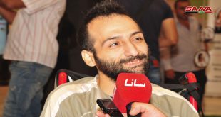 دمشق-سانا بجسده النحيل وعلى كرسيه المتحرك وبمساعدة والدته يتجول الشاب علي المحمود في المركز الإعلامي لمعرض دمشق الدولي بدورته الـ 61 ملقيا التحية على زملاء المهنة بابتسامة لا تفارق وجهه متابعاً النشاطات التي تتم داخل المركز وخارجه. علي البالغ من …