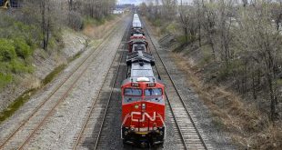واشنطن-سانا خرجت 10 عربات من قطار تابع لشركة السكك الحديدية الكندية الوطنية، كانت تحمل على متنها غازاً مسالاً