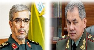 موسكو-سانا بحث وزير الدفاع الروسي سيرغي شويغو خلال اتصال هاتفي أجراه اليوم مع رئيس الأركان العامة للقوات المسلحة الإيرانية اللواء محمد باقري التعاون العسكري والتقني العسكري بين البلدين.