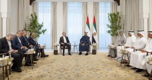أبوظبي-سانا بحث رئيس دولة الإمارات العربية المتحدة الشيخ محمد بن زايد آل نهيان مع وزير الخارجية الإيراني