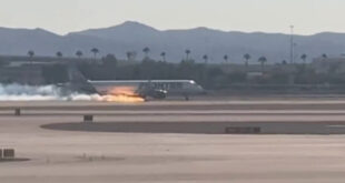 واشنطن-سانا اشتعلت النيران بطائرة ركاب تابعة لشركة الطيران الأمريكية “فرونتير إيرلاينز” في مطار هاري ريد الدولي في لاس