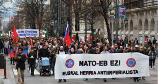 مدريد-سانا تظاهر مئات الإسبان في مدينتي بامبلونا بمنطقة نافارا وفيتوريا غاستيز في إقليم الباسك احتجاجاً على سياسات حلف شمال الأطلسي (الناتو)
