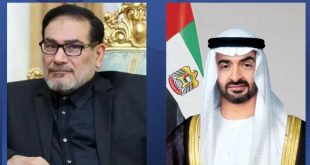 أبوظبي-سانا بحث رئيس دولة الإمارات العربية المتحدة الشيخ محمد بن زايد آل نهيان مع علي شمخاني أمين المجلس الأعلى للأمن