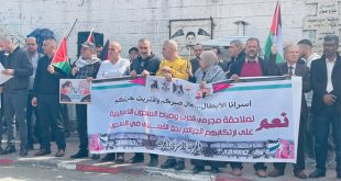 القدس المحتلة-سانا شارك مئات الفلسطينيين اليوم في وقفتين بمدينتي جنين وقلقيلية بالضفة الغربية دعماً للأسرى بمواجهة الهجمة الشرسة