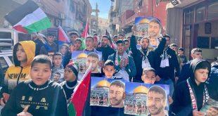 القدس المحتلة-سانا طالب عشرات الفلسطينيين اليوم خلال وقفة تضامنية في مخيم الأمعري بمدينة رام الله بالضفة الغربية المجتمع الدولي بالضغط على سلطات الاحتلال الإسرائيلي