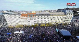 براغ-سانا تظاهر عشرات الآلاف من المواطنين التشيك مجدداً وسط العاصمة براغ، احتجاجاً على سياسات حكومة بلادهم