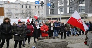 وارسو-سانا تجمع العشرات في العاصمة البولندية وارسو اليوم احتجاجاً على دعم السلطات البولندية للنظام في أوكرانيا