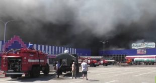 دونيتسك-سانا اندلع حريق بمركز غالاكتيكا للتسوق في دونيتسك جراء تعرضه لقصف