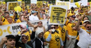 باريس-سانا نظم موظفون أتراك مفصولون تعسفيا من العمل مظاهرة احتجاجية أمام المحكمة الأوروبية لحقوق الإنسان