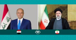 طهران-سانا أكد الرئيس الايراني ابراهيم رئيسي ونظيره العراقي برهم صالح خلال اتصال هاتفي بينهما اليوم ضرورة التعاون