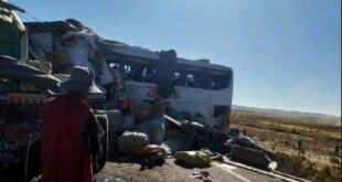 لاباز-سانا لقي 22 مصرعهم وأصيب 16 آخرون بجروح إثر حادث تصادم بين شاحنة وحافلة ركاب على