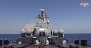 موسكو-سانا أجرى طاقم طراد فارياج الروسي اليوم تدريبات في البحر الأبيض المتوسط