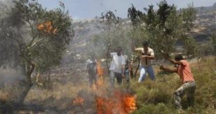 القدس المحتلة-سانا أحرق مستوطنون إسرائيليون اليوم مساحات من الأراضي الفلسطينية غرب مدينة بيت لحم بالضفة الغربية.