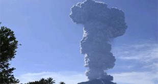 جاكرتا-سانا ثار بركان إيبو في ولاية مالوكو الشمالية في إندونيسيا مطلقاً رماداً بركانياً وصل ارتفاعه لآلاف الأمتار