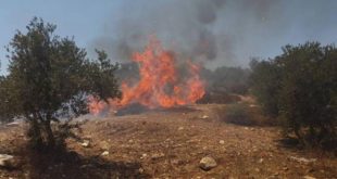 القدس المحتلة-سانا أضرم مستوطنون إسرائيليون اليوم النار في أراضي الفلسطينيين ببلدة دوما جنوب مدينة نابلس في