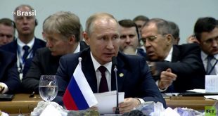 برازيليا-سانا جدد الرئيس الروسي فلاديمير بوتين التأكيد على ضرورة مكافحة الإرهاب والالتزام بالقانون الدولي والتعاون على حل المشاكل الإقليمية والدولية. وقال بوتين في كلمة له أمام الجلسة العامة لقمة بريكس في البرازيل اليوم “إن من أهم المسائل التي نهتم بها …