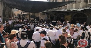 القدس المحتلة-سانا أصيبت سيدة فلسطينية اليوم جراء اعتداء قوات الاحتلال الإسرائيلي على المرابطين عند باب السلسلة أحد أبواب المسجد الأقصى المبارك. وذكرت وكالة معا أن قوات الاحتلال خلال اقتحام عشرات المستوطنين للمسجد الأقصى من باب المغاربة اليوم اعتدت على المرابطات …