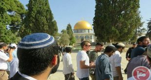 القدس المحتلة-سانا جدد عشرات المستوطنين الإسرائيليين اليوم اقتحام المسجد الأقصى بحماية قوات الاحتلال. وذكرت وكالة وفا أن أكثر من 100 مستوطن اقتحموا الأقصى من جهة باب المغاربة ونفذوا جولات استفزازية في باحاته بحراسة مشددة من قوات الاحتلال. وينفذ المستوطنون الإسرائيليون …
