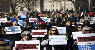 واشنطن-سانا تجمع مئات المعارضين للرئيس الأمريكي دونالد ترامب اليوم قرب البيت الأبيض تعبيرا عن احتجاجهم على إعلان حالة “الطوارىء الوطنية” في البلاد في إطار مسعى ترامب للالتفاف على رفض الكونغرس الموافقة على تمويل جدار على الحدود مع المكسيك. وذكرت فرانس …
