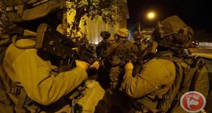 القدس المحتلة-سانا اعتقلت قوات الاحتلال الإسرائيلي فجر اليوم أربعة فلسطينيين من مناطق متفرقة بالضفة الغربية. وذكرت وكالة معاً الفلسطينية للأنباء أن قوات الاحتلال اقتحمت قريتي كفر نعمة وبلعين غرب رام الله واعتقلت أربعة فلسطينيين بعد مداهمة منازلهم والعبث بمحتوياتها. وكان …