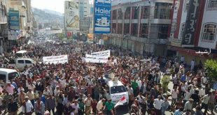 مظاهرة حاشدة في تعز تنديدا باستمرار العدوان السعودي على اليمن