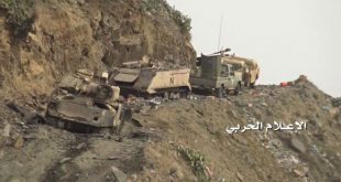 صنعاء– سانا دمر الجيش اليمني واللجان الشعبية اليوم ثلاث آليات عسكرية لمرتزقة تحالف العدوان السعودي في جبهة الساحل الغربي. ونقلت وكالة الأنباء اليمنية “سبأ” عن مصدر عسكري قوله: إنه تم تدمير مدرعتين للمرتزقة في الدريهمي ومصرع وإصابة طاقميهما. وأشار المصدر …