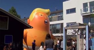 لندن-سانا تظاهرت حشود من البريطانيين اليوم أمام مجلس العموم البريطاني في العاصمة لندن ورفعوا دمية على شكل منطاد يصور الرئيس الأمريكي دونالد ترامب على هيئة طفل غاضب برتقالي اللون. وكان متظاهرون تجمعوا أمس أيضا أمام مقر السفير الأمريكي في ريجنتس …