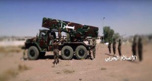 صنعاء-سانا أطلقت القوة الصاروخية للجيش واللجان الشعبية اليمنية اليوم صاروخاً باليستياً على مقر القيادة الجوية للنظام السعودي في عسير. وقال مصدر في القوة الصاروخية لوكالة الأنباء اليمنية “سبأ” إنه تم “استهداف مقر القيادة الجوية للنظام السعودي بصاروخ من طراز بدر …