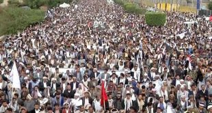 صنعاء-سانا تظاهر عشرات آلاف اليمنيين في العاصمة صنعاء اليوم للتنديد بجرائم تحالف العدوان السعودي الأمريكي ومرتزقته ومن بينها جريمة اغتصاب فتاة في الخوخة ارتكبها أحد المرتزقة السودانيين الأسبوع الماضي. وأكد المشاركون في المظاهرة التي أقيمت في ساحة باب اليمن تحت …