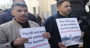 رام الله-سانا تظاهر شبان فلسطينيون في مدينة رام الله بالضفة الغربية اليوم احتجاجا على قرار الرئيس الأميركي دونالد ترامب الاعتراف بالقدس المحتلة عاصمة لكيان الاحتلال الإسرائيلي. وذكرت “فرانس برس” أن الشبان الفلسطينيين رشقوا وفدا أميركيا يضم أعضاء في المجلس البلدي …