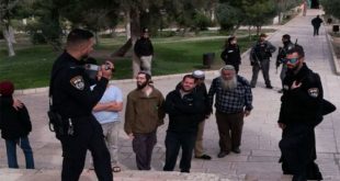 القدس المحتلة-سانا جددت مجموعات من المستوطنين الإسرائيليين اليوم اقتحاماتها للمسجد الأقصى المبارك بحراسة مشددة من قوات الاحتلال. وأفادت وكالة الأنباء الفلسطينية وفا بأن عشرات المستوطنين اقتحموا المسجد من جهة باب المغاربة ونفذوا جولات استفزازية في باحاته مضيفة أن مستوطنين أقدموا …