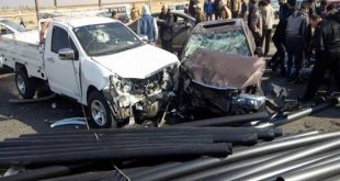 القاهرة-سانا لقي 11 شخصا مصرعهم وأصيب العشرات في حادث تصادم بين عدة سيارات بمحافظة المنيا المصرية اليوم. ونقلت وسائل إعلام مصرية عن المتحدث الرسمي باسم وزارة الصحة والسكان خالد مجاهد قوله إن “الحادث وقع على الطريق الصحراوي بعد بوابة رسوم المنيا …