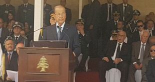 بيروت-سانا جدد الرئيس اللبناني العماد ميشال عون التأكيد على استمرار الجيش والمؤسسات الأمنية اللبنانية في مواجهة الإرهاب وعدم التراجع عن ذلك. وقال عون خلال احتفال بعيد الجيش اللبناني اليوم “نجحتم في تفكيك الكثير من الشبكات والخلايا الإرهابية وتحقيق ضربات استباقية …