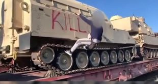 المزيديونانيون من الحزب الشيوعي يوقفون قطاراً يحمل دبابات أمريكية ويجبروه على العودة