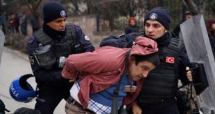 أنقرة-سانا اعتقلت الشرطة التركية التابعة لنظام رجب طيب أردوغان اليوم 12 شخصا وأطلقت الغاز المسيل للدموع لتفريق مئات المحتجين الذين كانوا يحاولون دخول جامعة أنقرة للتنديد بطرد 330 أكاديميا بقرار من النظام التركي. ونقلت رويترز عن مشاركين في الاحتجاج قولهم.. …