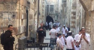 القدس المحتلة-سانا اقتحم المستوطنون الصهاينة مجددا المسجد الاقصى اليوم بحماية قوات الاحتلال وقاموا بجولات استفزازية في ارجائه في حين اعتقلت قوات الاحتلال امرأة وشابا فلسطينيين في القدس المحتلة. وافادت وكالة وفا الفلسطينية بأن قوات الاحتلال اعتقلت سيدة من كفر كنا …