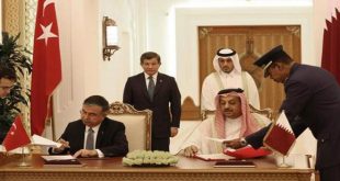 الدوحة-سانا وقع النظام التركي ومشيخة قطر اليوم اتفاقية تقضي بنشر قوات تركية على أراضي المشيخة. وذكرت وسائل إعلام أن التوقيع على هذه الاتفاقية تم خلال الزيارة التي يقوم بها رئيس حكومة حزب العدالة والتنمية الحاكم في تركيا أحمد داود أوغلو …