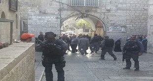 القدس المحتلة-سانا اقتحمت قوات الاحتلال الإسرائيلي بعد انتهاء صلاة الفجر اليوم المسجد الأقصى المبارك واعتدت على المصلين بالقنابل الصوتية والأعيرة المطاطية ما خلف عددا من الإصابات بينهم طفل. ونقلت وكالة معا عن شهود عيان قولهم ” إن قوات الاحتلال اقتحمت …
