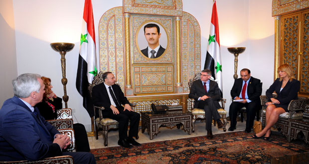 دمشق-سانا بحث رئيس مجلس الشعب محمد جهاد اللحام مع وفد برلماني بلجيكي برئاسة عضو مجلس النواب الاتحادي البلجيكي فيليب دوينتر اليوم العلاقات البرلمانية الثنائية حيث أكد دوينتر أن “الوفد سيعمل على إعادة العلاقات الدبلوماسية مع سورية ووضع حد للمقاطعة الاقتصادية …