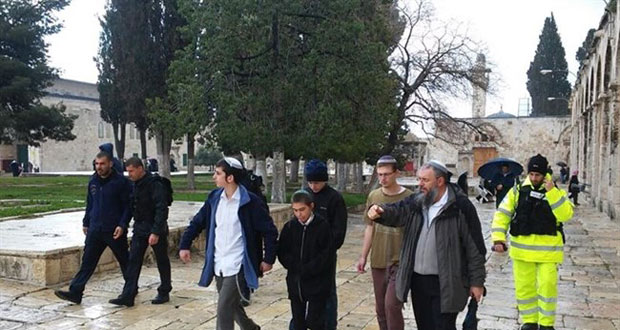 القدس المحتلة-سانا جددت عصابات المستوطنين الإسرائيليين اليوم اقتحاماتها لساحات المسجد الأقصى المبارك بالقدس المحتلة عبر باب المغاربة وسط حماية وتغطية قوات الاحتلال الإسرائيلي منتهكة من جديد حرمة المسجد. وذكرت وكالة معا الإخبارية الفلسطينية إن 56 متطرفا اسرائيليا اقتحموا ساحات المسجد …