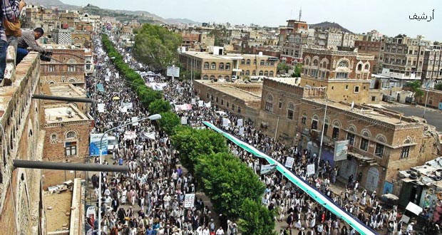 صنعاء-سانا خرج مئات آلاف اليمنيين في مظاهرة حاشدة بالعاصمة اليمنية صنعاء تحت شعار “جمعة الوفاء لفلسطين وتحقيق مطالب الشعب بإسقاط الحكومة وتنفيذ بنود الحوار الوطني” أعلنوا خلالها إقامة اعتصامات دائمة في عدد من الساحات العامة ومداخل صنعاء إلى حين تنفيذ …