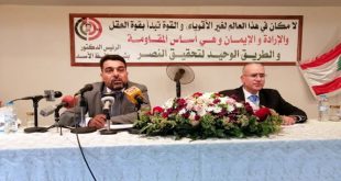 بيروت-سانا “انتصار الإرادة والعقل العربي على الخوف والأوهام” عنوان المحاضرة التي ألقاها رئيس اتحاد الكتاب العرب الدكتور محمد الحوراني في جمعية مركز الشهيد الرائد الركن باسل الأسد الثقافي الاجتماعي في مدينة بعلبك بلبنان. المحاضرة التي أقيمت بمناسبة الذكرى الثامنة والأربعين …
