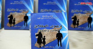 ريف دمشق-سانا استضافت مديرية ثقافة ريف دمشق حفل توقيع كتاب “دعوى الطلاق للغائب والمفقود” للباحث المحامي محمد سامر مؤيد. ويقدم الكتاب قراءة تطبيقية منهجية لمكانة المرأة وحقوقها الأساسية التي أقرتها الشرائع متناولا حالات معينة أفرزتها الحرب الإرهابية على سورية لنساء فقدن …