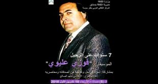 دمشق-سانا في الذكرى السابعة لرحيل الفنان فوزي عليوي يقيم المركز الثقافي العربي في كفرسوسة عند الساعة الخامسة من مساء غد أمسية تشارك فيها أسرة الراحل وعدد من أصدقائه ومعاصريه. يذكر أن الراحل من مواليد محافظة السويداء سنة 1946 بدأت هوايته الفنية …