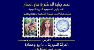 دمشق-سانا برعاية الدكتورة نجاح العطار نائب رئيس الجمهورية تقيم صالة السيد للفنون معرضاً تشكيلياً بعنوان المرأة السورية تاريخ وحضارة عند الثانية عشرة من ظهر الخميس القادم. ويشارك بالمعرض الفنانات التشكيليات ناديا نعيم وسراب عروس وغادة حداد ونهى جبارة وفيفيان صايغ …