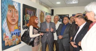 دمشق-سانا بمناسبة يوم القدس العالمي أقامت اللجنة التحضيرية ليوم القدس العالمي واتحاد التشكيليين الفلسطينيين فرع سورية بالتعاون مع فرع دمشق لاتحاد الفنانين التشكيليين السوريين معرضاً فنياً ضم لوحات ركزت على القضية الفلسطينية ورموزها. وتضمن المعرض الذي افتتح اليوم في صالة …
